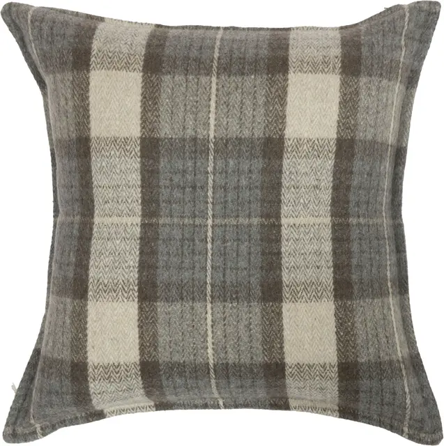 Härligt kuddfodral i ull med stora rutor i nyanser av brun, beige och grå. Ull är ett andningsbart material, vilket gör kuddfodralet behagligt året runt. Fodralet har en stilren finish som passar i alla rum.