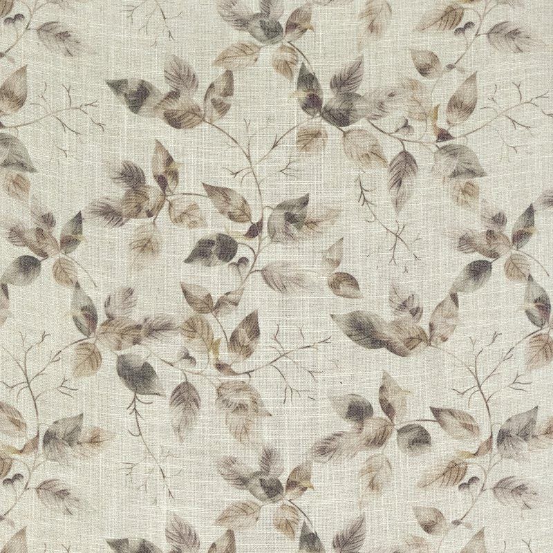 Leafy är en metervara som bjuder på ett elegant bladmotiv i jordnära färger. De varma tonerna av bruna och beiga nyanser skapar en naturlig och harmonisk känsla, som påminner om höstiga skogar och lugna trädgårdar.
